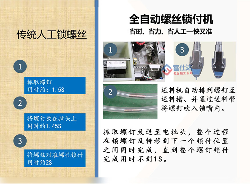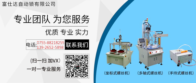 富仕達擁有獨立研發設計團隊,10多位自動化高級工程師,5000㎡自動鎖螺絲機生產、測試車間,專業售后服務團隊,為客戶提供方案設計、設備制造、操作培訓、售后服務等一站式服務。 公司將持續提升技術創新和產品服務方面的優勢,堅持“專業、精工、服務”的企業理念,聚焦于自動鎖螺絲設備生產,通過系統的一站式解決方案,真正的幫助客戶提升效率、降低成本,提升客戶的核心競爭力。
